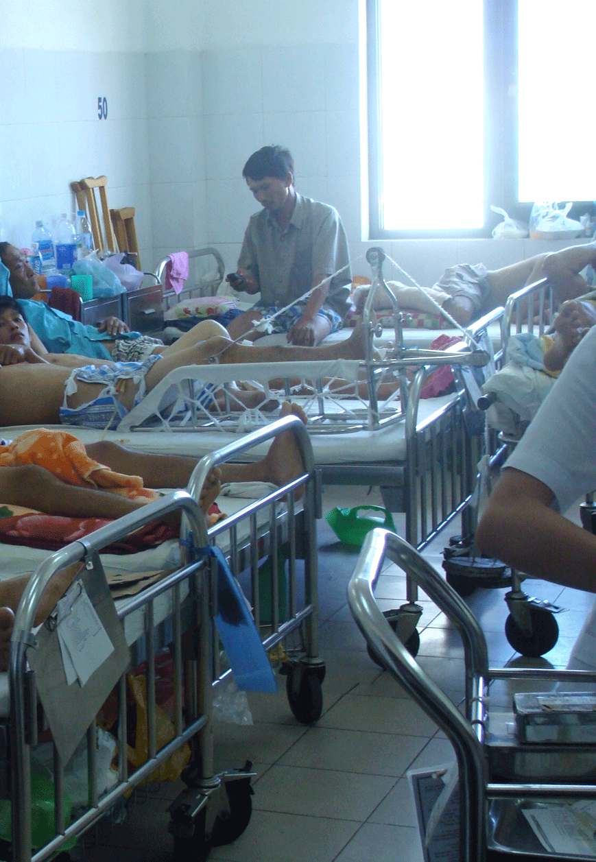 Städtisches Krankenhaus Da Nang Befreundete Ärzte hatten uns in der Vergangenheit medizinische Bestecke und Kleingeräte in die Geschäftsstelle gebracht, und wir suchten ein entsprechendes Krankenhaus, um sie nach Vietnam zu bringen. Man schlug uns dieses Krankenhaus vor (mit Hubschrauber-Landeplatz, Spezialkliniken für Onkologie und Kardiologie). Wir dachten zunächst, es sei viel zu groß für unsere Möglichkeiten. Die Ärzte sagten uns aber: Die staatlichen Zuschüsse werden nach der Bettenzahl zugeteilt. Man nimmt dort aber auch viele arme Patienten auf, die umsonst behandelt werden. Dafür gibt es keine zusätzlichen Mittel. Die Mehrarbeit nehmen die Ärzte auf sich, und in den Zimmer geht es eng zu. Da sind Sachspenden wie Verbrauchsmaterial, Kleingeräte, OP-Bestecke etc. hoch willkommen, denn damit kann man Geld sparen für die Versorgung der armen Patienten. |
