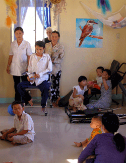 Rehazentrum für dioxingeschädigte Kinder im Dorf Hoa Quy, im Distrikt Ngu Hanh, Da Nang. Es handelt sich um ein kleines Rehabilitationszentrum für Familien, in denen behinderte Kinder leben. Die Kinder wohnen zu Hause und kommen nur zur Behandlung und gymnastischen Betreuung in das Zentrum. Die Eltern helfen bei der Behandlung und erhalten Ratschläge für die Betreuung der Kinder zu Hause. Auch Hausbesuche werden gemacht. Nebenan ist eine Rot-Kreuz-Station für eine evtl. nötige medizinische Versorgung. Nähere informationen bietet ein Informationsblatt, das Sie zum Sammeln von Spenden im Bekanntenkreise auch ausdrucken können. |