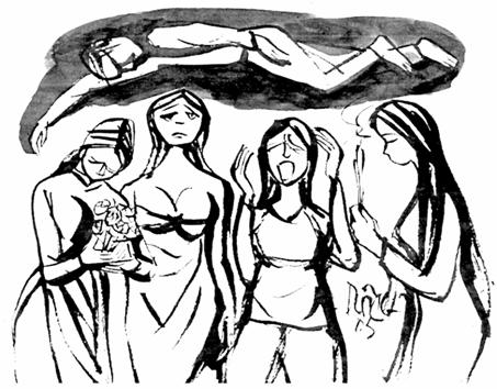 Sie schaute ihm schweigend zu, als er die Opfergaben vorbereitete und sie auf dem Altar ausbreitete, und sie betete darum, ihr Sohn möge zurückkehren und mit ihnen zu Abend essen. Sie glaubte nicht, daß er kommen würde, denn er war ja schon im Himmel. Aber wenn sie ihren Mann sah, wie er den Reistopf in seine schon zittrigen Hände nahm, da wünschte sie sich so sehr, daß ihr Sohn nach Hause zurückkommen und mit ihnen gemeinsam den Reis essen würde.