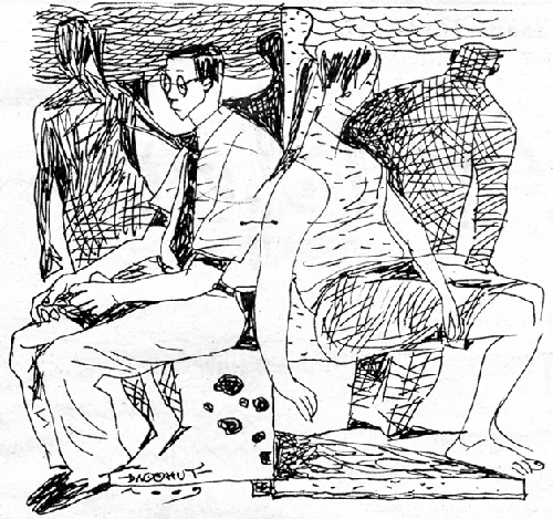 Sofort stand ich auf, klaubte die Socken zusammen und warf sie auf einen Haufen schmutziger Wäsche, die zum Waschen bereit lag. Als ich zum Tisch zurückkehrte, war sie immer noch mit dem Tee beschäftigt. Ein Fleck auf dem karierten Tischtuch erinnerte mich an einen Besucher, der letztes Jahr überraschend zu unserer Weihnachtsfeier vorbeigekommen war. Damals waren wir alle etwas beschwipst, und ich wußte nicht genau, wer er war: einer meiner Freunde oder einer ihrer Bekannten. Als die Party sich dem Ende näherte, sprang er auf und rezitierte auswendig ein Gedicht.