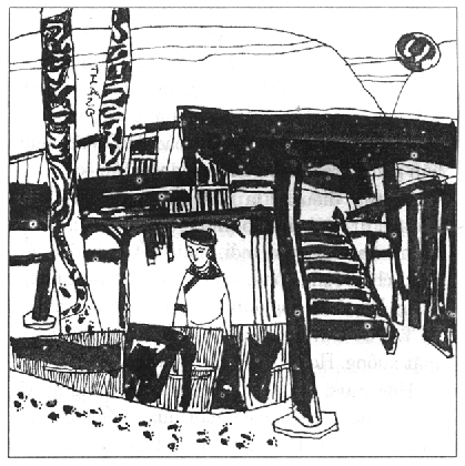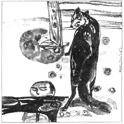 Der kleine Wolf wuchs unter den Haushunden heran. Sein Scheitel zeigte weiterhin die Spuren der Zähne: dort hatte sich eine Narbe gebildet, auf der kein Fell wachsen wollte. Der kleine Wolf wurde in Nhans Haus aufgezogen. Er gewöhnte sich an die Menschen und glich im Großen und Ganzen einem Haushund, abgesehen von seinen Augen und seinem Verhalten: Seine Augen waren bösartig, sein Verhalten verstohlen und hinterhältig. Weder Nhan noch San mochten ihn. Jedoch unternahm der Wolf nie etwas gegen den Willen der Menschen oder der Tiere im Haus. Er wich allen Zusammenstößen aus und zeigte ein so überaus sanftes Wesen, daß es ganz sonderbar war. Weder stritt er mit den Hunden um das Fressen, noch reizte er die Pferde, Ziegen, Schweine oder Hühner. Er verhielt sich still und sehr umsichtig. Er schien zu wissen, daß keiner im Haus ihn mochte.