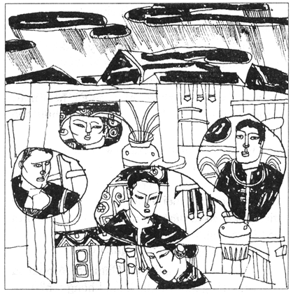 Wenn ein Besucher nach Hua Tat kommt, wird er in den Kreis ums Feuer gebeten und eingeladen, mit einem Röhrchen Reiswein aus einem Krug zu trinken4 und dazu einen Streifen Dörrfleisch eines wilden Tieres zu essen. Einem rechtschaffenen Gast wird das Familienoberhaupt Gelegenheit geben, einer der alten Legenden zu lauschen. Es mag sein, daß viele dieser alten Geschichten oft von dem Elend der Menschen erzählen, aber wenn wir diese Not wirklich deutlich verstehen, wird sich aus diesem Verstehen heraus ein edelmütiges Herz entfalten.