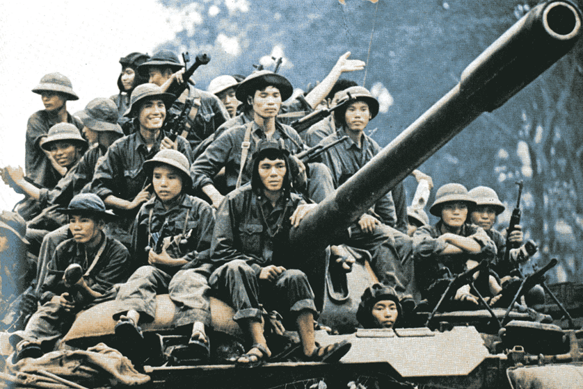 Das war der Anfang vom Ende der Thieu-Streitmacht, am 30. April wird, nach einige letzten Kämpfen im Süden, Saigon befreit. Ein Jahr später kam die Wiedervereinigung, die Sozialistische Republik Vietnam (SRV) entsteht. Die militärische Leitung dieses letzten siegreichen Feldzugs, genannt Kampagne Ho Chi Minh, lag bei General Van Tien Dung. Giap war die ganze Zeit in Hanoi und „dirigierte“ sie im Namen der Regierung, in engem Kontakt zum eigentlichen Generalstab, der zuletzt alle paar Tage weiter nach Süden verlegt wurde.18 Erst einige Tage nach dem Sieg kommt er in Begleitung von Le Duan, dem Parteichef, in Saigon an. Schon seit Beginn der 1970er Jahre waren die militärischen Aktivitäten nicht mehr sein eigentliches Arbeitsgebiet – abgesehen von der Verteidigung von Hanoi und anderen Städten im Norden gegen die Bombenangriffe aus der Luft, die äußerst effektiv war und der US-Luftwaffe empfindliche Verluste zufügte.
