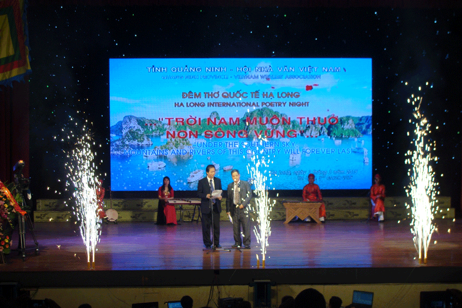 Aber es gab auch wirklich gute Ideen. Die beiden Ausflüge, die beim letzten Mal den Ablauf der Konferenz als touristische Einlagen abrupt unterbrachen, waren dieses Mal an einschlägige Veranstaltungen gekoppelt. In Ha Long waren wir als Gäste der Provinzverwaltung bei einem Kulturabend, der auch zum Teil Gedichten vorbehalten war.