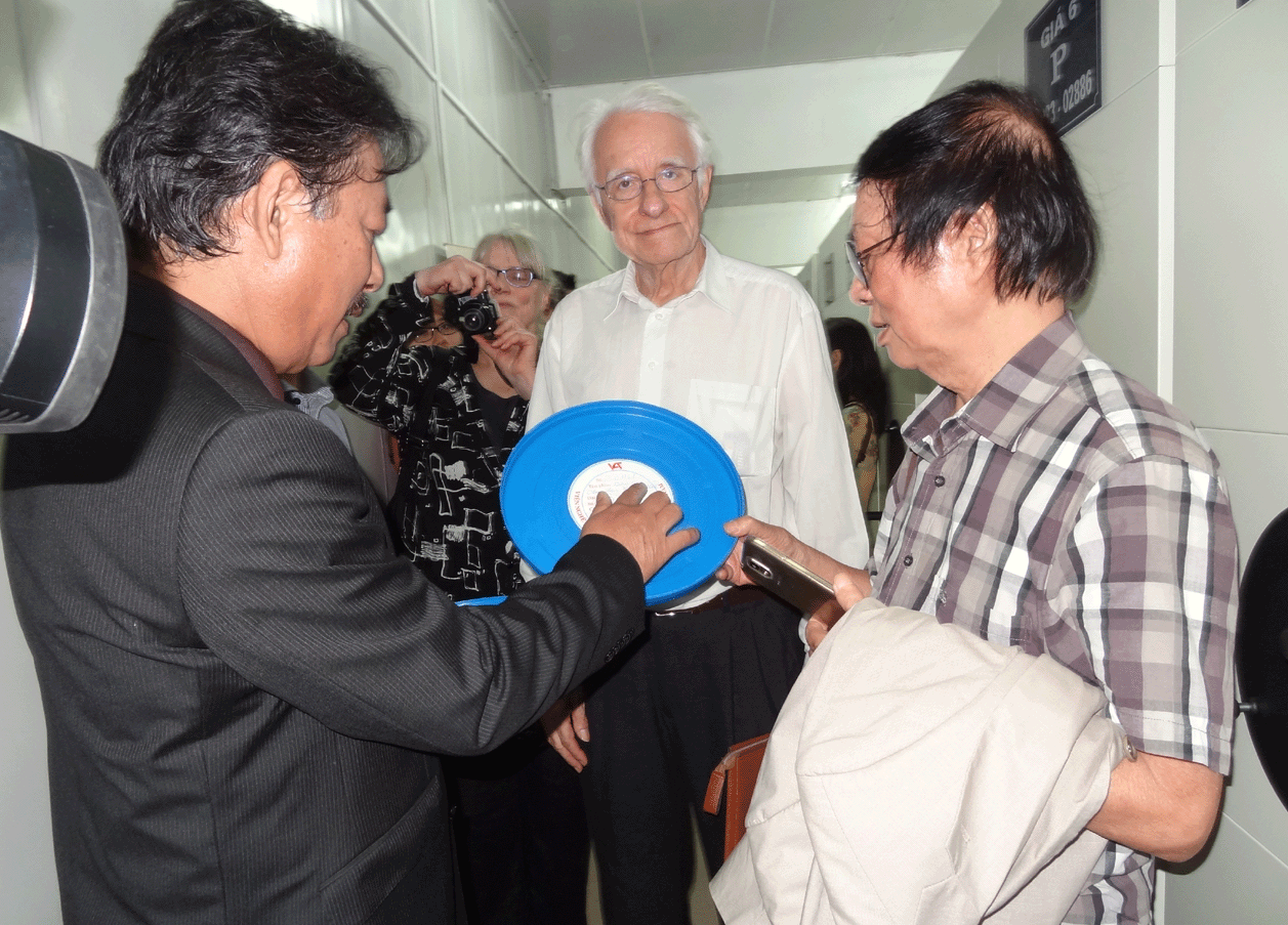 Auch ein sehr berühmter Filmregisseur war da, den ich bei der Gelegenheit zum ersten Mal traf, obwohl ich seine Filme gut kenne: Dang Nhat Minh. Von einem seiner Filme hatten wir auch hier eine sehr gut erhaltene Kopie in 35 mm (Bao gio cho dan thang muoi, Wenn der zehnte Monat kommt, von 1984) und er hat vor den Kameras des Fernsehens mit Tränen in den Augen gesagt, jetzt sei einer seiner Söhne wieder in die Heimat zurückgekehrt. Ich erfuhr, das man in Vietnam keine wirklich gute Kopie des Films mehr hatte. Es waren drei TV-Kamerateams anwesend, und es soll etwa ein halbes Dutzend Berichte über diese Feier den verschiedenen Kanälen des Vietnamesischen Fernsehens gegeben haben.