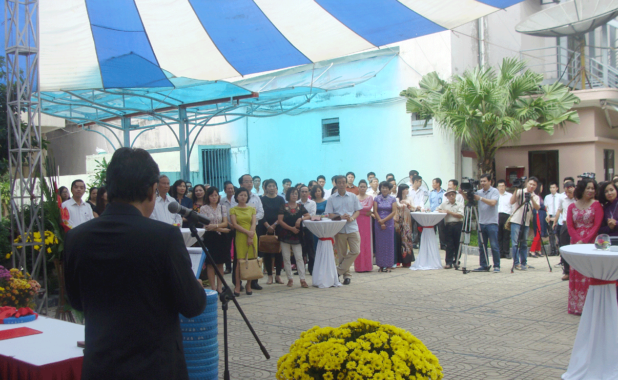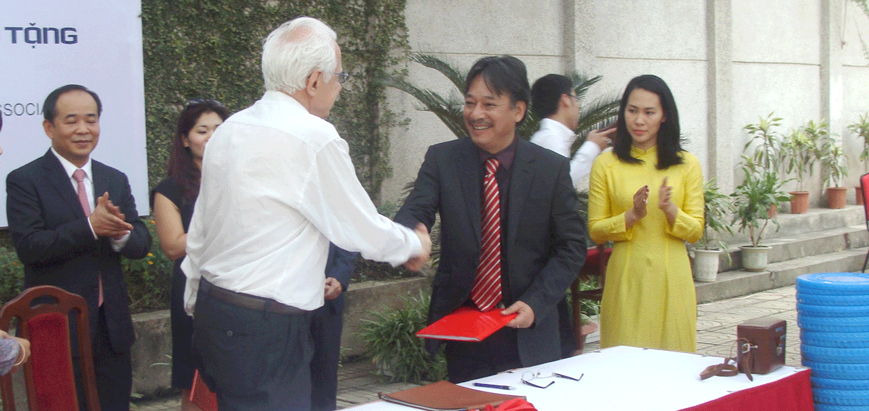 An dem Abend versammelten sich dann also etwa 100 Personen im Innenhof des Instituts, wo eine große Zeltplane und ein Tisch installiert worden waren. Viele uns bekannte Persönlichkeiten waren gekommen, und uns wurde bewusst, dass man unsere Aktion sehr „hoch gehängt“ hatte. Der Vizeminister für Kultur war anwesend und viele uns unbekannte Prominenz aus Regierungsstellen und dem Filmwesen. Natürlich war auch unsere Schwesterorganisation zahlreich vertreten mit Prof. Huay, dem vorigen Vorsitzenden, Frau Chu Thu Phuong, die früher in der Berliner vietnamesischen Botschaft tätig war, unsere alten Freunde Quyen, der Dokumentarfilmer und mein Kameramann bei vielen Produktionen Luong Duc, der ehemalige Generalkonsul Nguyen Huu Trang mit seiner Frau, die Direktorin einer Filmproduktionsfirma ist, die beiden früheren Direktoren des Film Instituts, der Leiter des Verbindungsbüros des Landes Hessen in Hanoi.