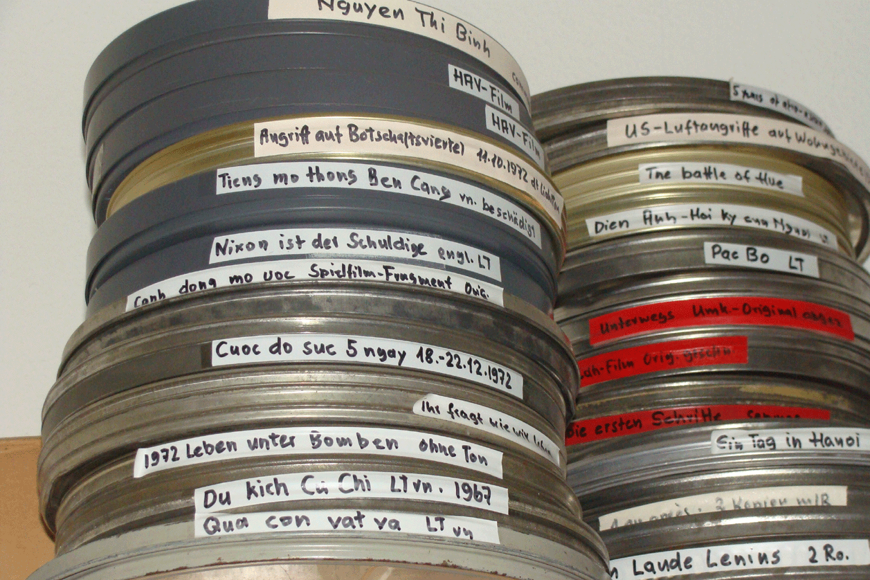 Es handelte sich vor allem um Filme, die in den 1960er bis 1980er Jahren in Vietnam von Vietnamesischen Regisseuren und Kameraleuten gedreht worden sind. An die Freundschaftsgesellschaft sind sie auf verschiedenen Wegen gekommen: über die vietnamesische Botschaft, damals noch in Bonn, oder bei internationalen Filmfestspielen in Oberhausen oder Leipzig, auf denen ich mich regelmäßig mit den Filmleuten vom Dokumentarfilmstudio Hanoi oder vom Studio Giai Phong aus der befreiten Zone im Süden traf. Wir unterstützten die Kollegen mit der Übergabe von technischen Geräten und Zubehör, dafür ließen sie uns die Kopien, die sie zum Festival mitgebracht hatten. Einen ersten Grundstock erhielt die Freundschaftsgesellschaft bei ihrer Gründung 1976 vom „Initiativkomitee für deutsch-vietnamesische Kulturbeziehungen (BRD)“ in Köln. Darin hatten sich vor allem Filmschaffende aus der BRD organisiert, um ihren vietnamesischen Kollegen zu helfen und Filme für die Solidaritätsarbeit bereitzustellen.