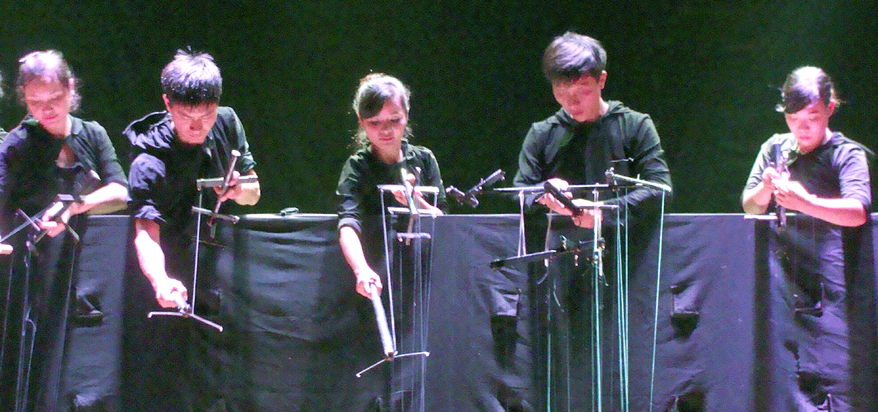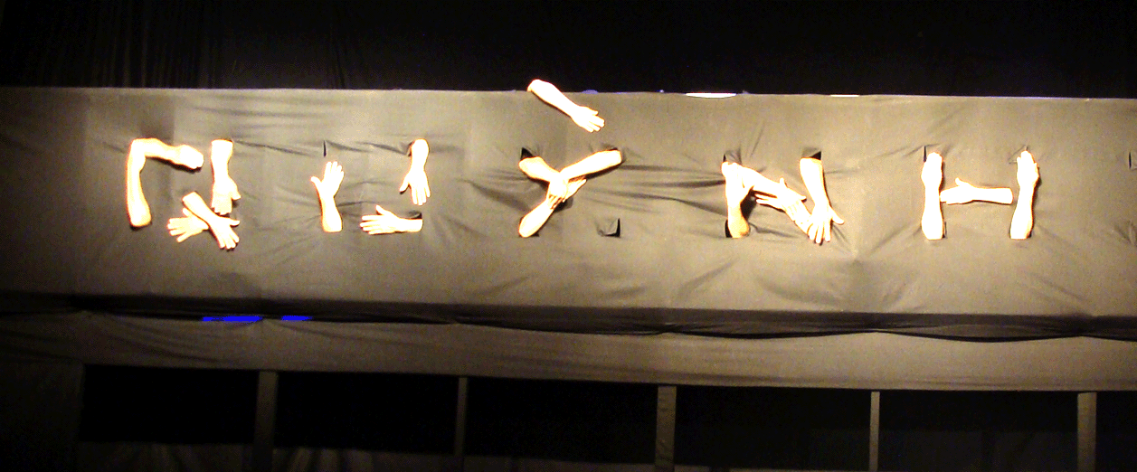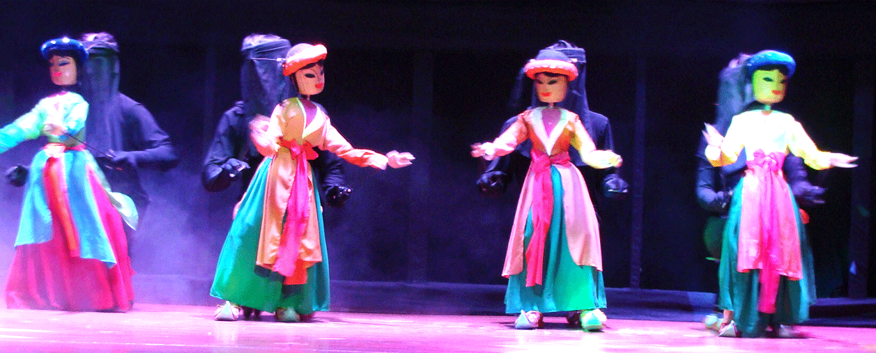 In Hanoi war dies nur eine der Theaterformen, die vorgeführt wurden. Eine andere bestand darin, dass aus Löchern in dem schwarzen Hintergrundvorhang menschliche Hände herausgestreckt wurden und rhythmische Bewegungen vollführten, die sich am Schluss sogar zu Buchstaben zusammenfanden, die eine Art „Zwischentitel“ formten.