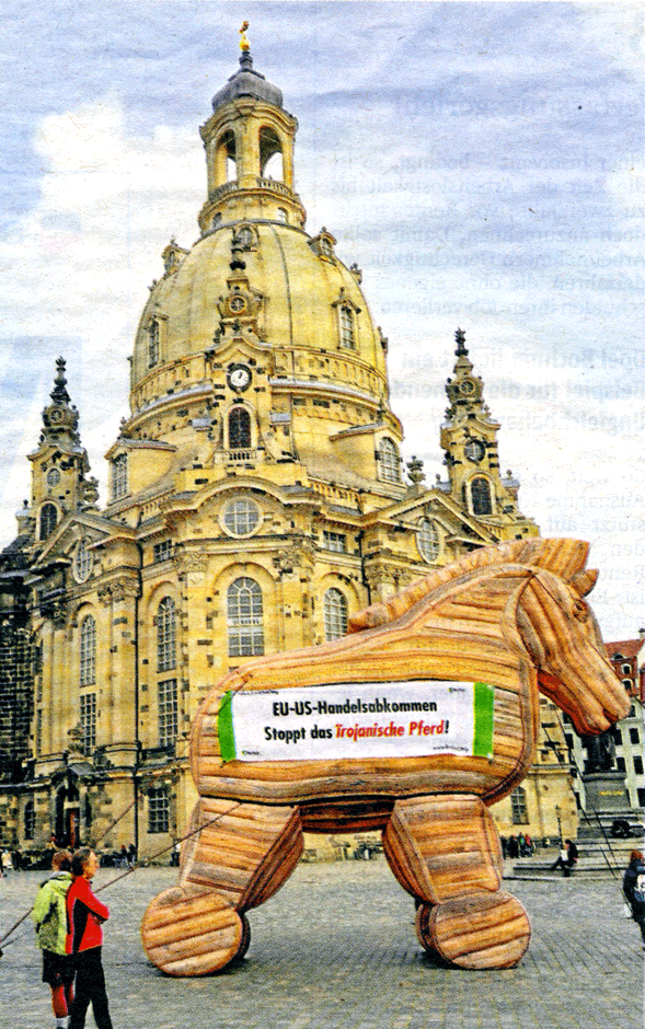 ass die Auszüge in englischer Sprache und zudem in einem schwer verständlichen, sehr technokratischen Fachjargon verfasst sind, zeugt nicht von einem ausgeprägten Bedürfnis nach Transparenz – eine deutsche Übersetzung wird nicht geliefert. Lesbar sind, nach Meinung mancher, die sich die Mühe gemacht haben, die Texte zu prüfen, allenfalls kurze Zusammenfassungen zu bestimmten Themen wie „Handel mit Chemikalien, mit Textilien und Kraftfahrzeugen“, zu „technischen Handelsbarrieren, Industrienormen“ und zu den besonders umstrittenen Investitionsschutz-Regularien“1 Vorher war bekannt geworden, dass die USA, die anscheinend eine Kennzeichnung von gentechnisch veränderten Lebensmitteln oder -zutaten fürchten wie der Teufel das Weihwasser, deshalb den cleveren Kompromissvorschlag gemacht haben, diese Information in den Barcode auf den Verpackungen zu verstecken. Wer kein Smartphone hat, kann oder wird es nicht lesen (und er und alle anderen sollen es wohl auch möglichst nicht lesen).